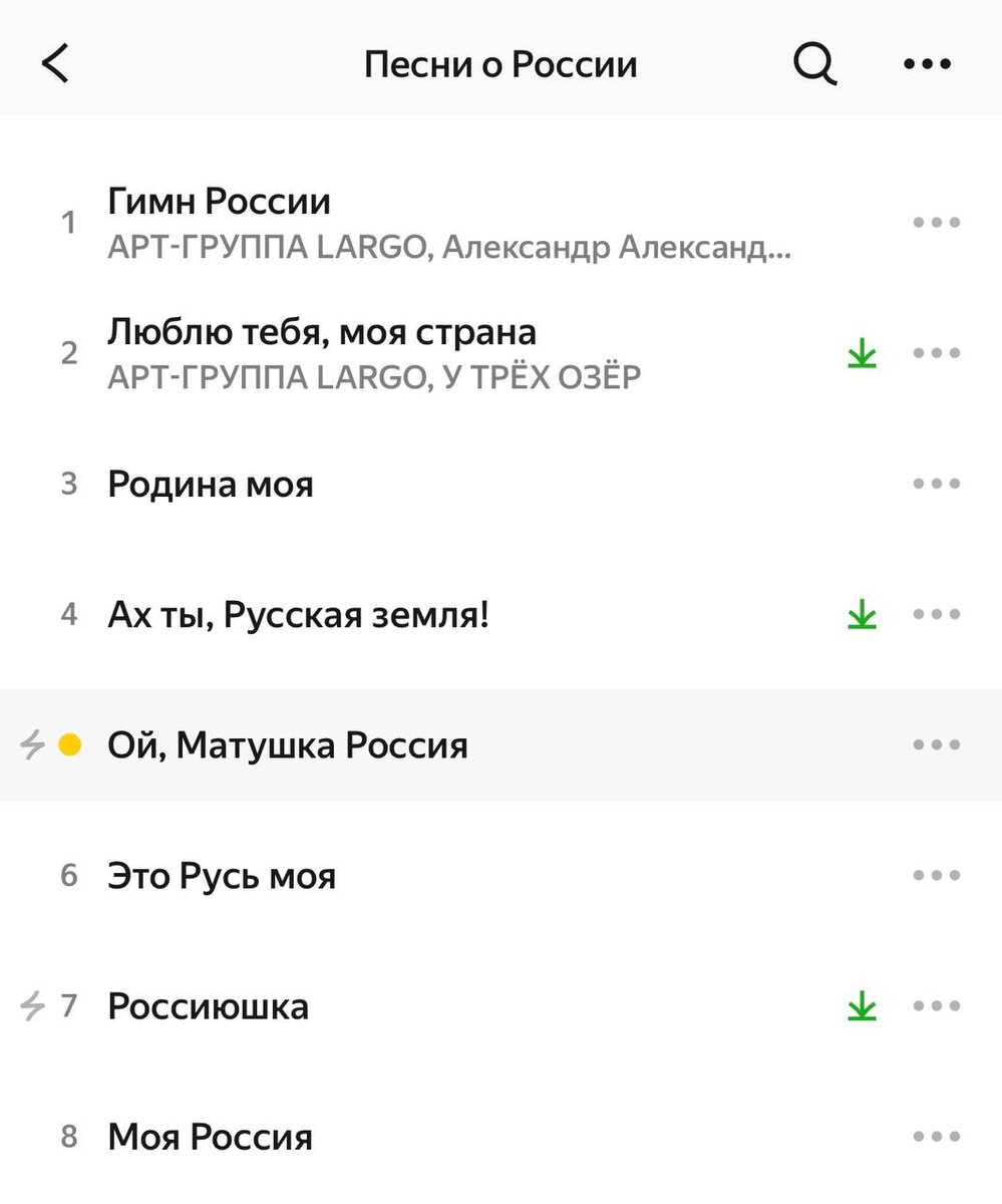 Наши дорогие на ЯндексМузыке мы создали плейлист песен о матушке России