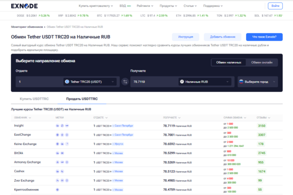 Сайт мониторинга криптообменников Exnode