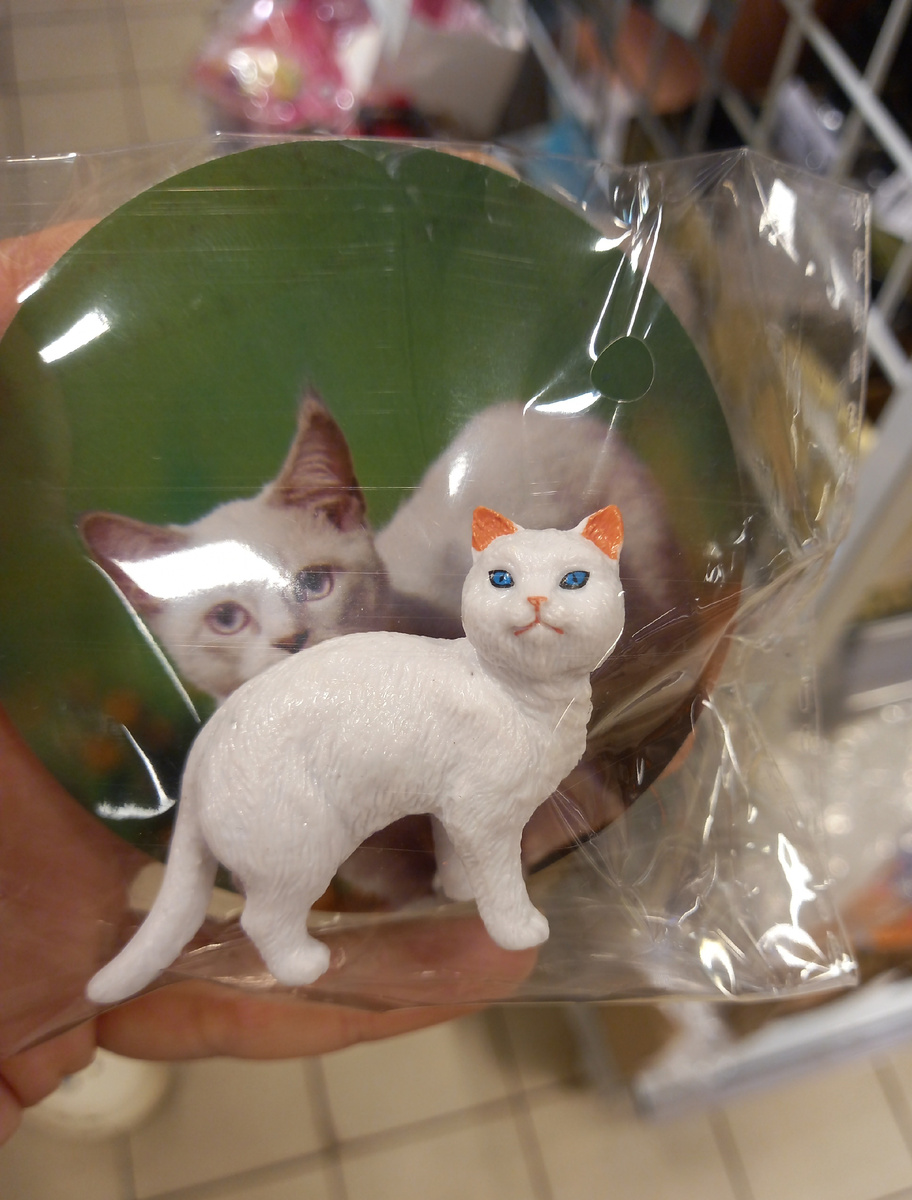 Привет! Как-то резко вчера подруга меня потянула в магазин Пятёрочка. В магазине подошли к отделу с игрушками. Она говорит "Вот они!"😃 Оказывается ей какая-то знакомая скинула информацию что в Пятёрочках привезли неплохие миниатюрки. Качество и правда хорошее. Игрушки твёрдые. Особо радует что игрушки полностью 3D. Даже у тех фигурок , которые лежат на пузичке не просто срез, а всё детализировано. Цена одной игрушки 99 рублей. Выбрала белую кошку с ярко-голубыми глазками) Вместе с каждой игрушкой в пакетике имеется инструкция и фото животного. Жаль нет краткого описания породы. Хотя бы названия. Согласитесь не плохие миниатюры? Особо и придраться не к чему. Видели уже таких малышей и какие питомцы и мини фигурки есть у вас? Не обязательно из данной серии)