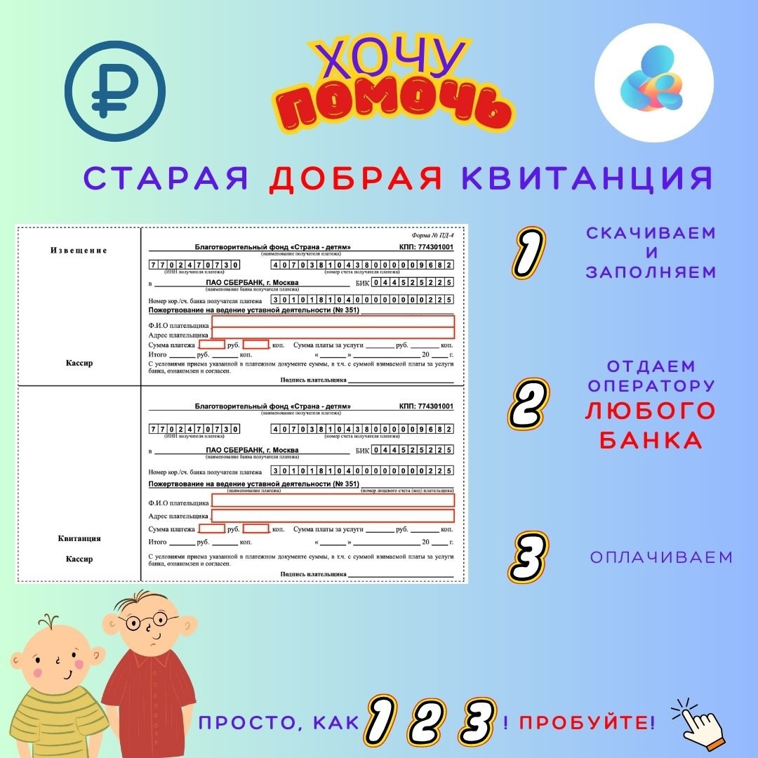 А скачать квитанцию можно тут - https://stranadetyam.ru/wp-content/uploads/2023/07/kvitancziya.pdf