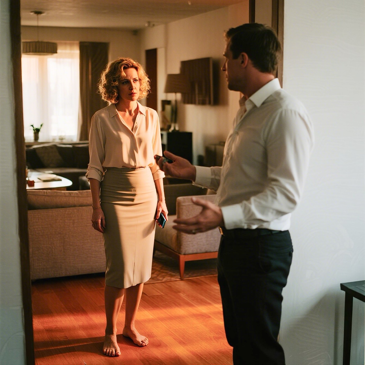 В пятницу Лера пришла с работы уставшая — был тяжёлый день, сорвалась важная сделка, и начальник был не в лучшем настроении. Она мечтала о горячей ванне и спокойном вечере, но стоило ей переодеться, как зазвонил телефон, который она оставила в комнате. Сергей принёс телефон и включил громкую связь.