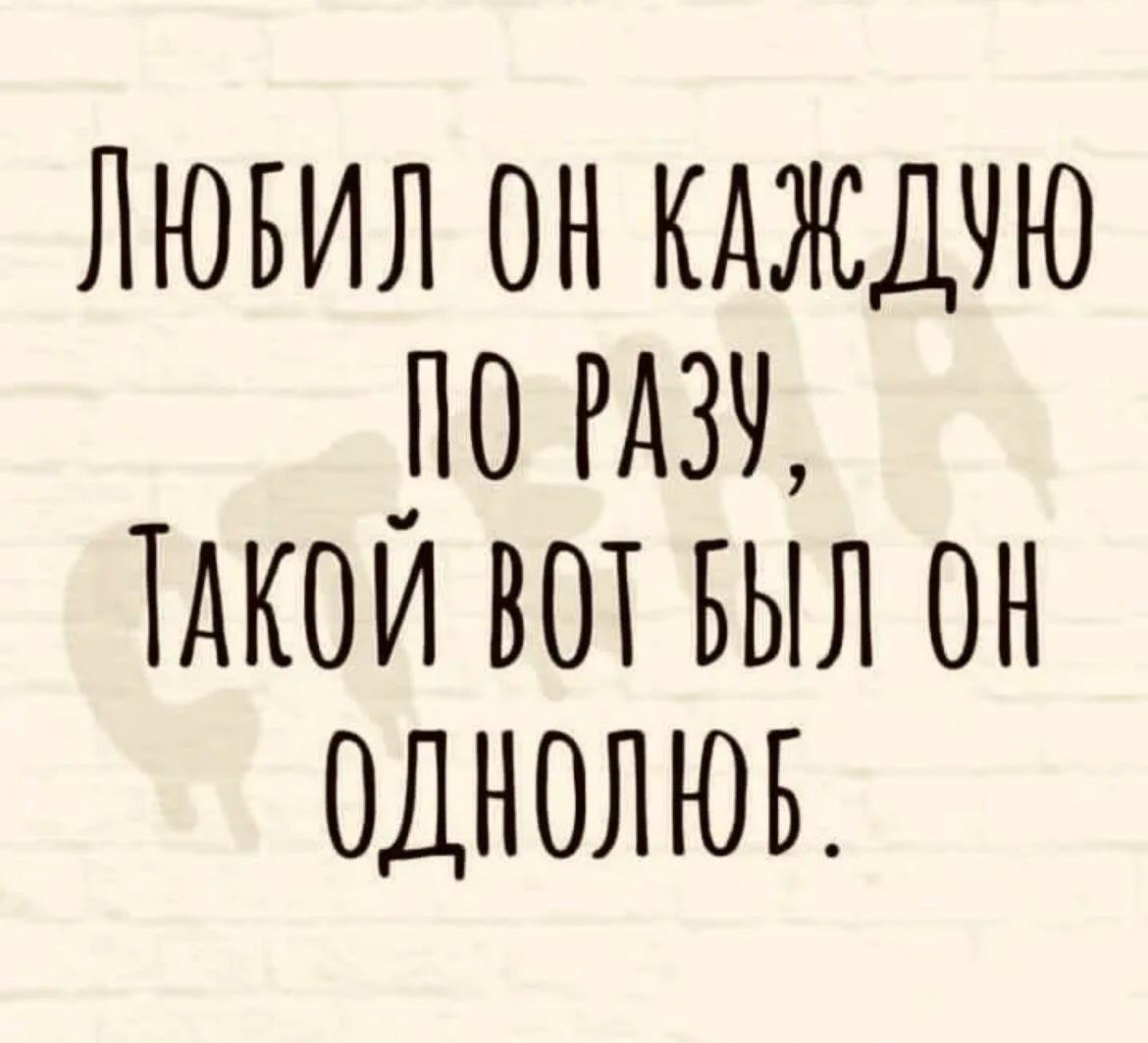 однолюб но много@б Опираясь на свой жизненный опыт, а поболтать на личные темы я всегда любила (а тут- просто подарок судьбы-дзен, в котором мужики пишут, не скрываясь), никогда не верила в их существование. Не, я не спорю, всегда была у них в жизни каждого какая-то красотка, которая разбила им сердце, обычно в юности, но у разных Понь эта юность наступила в 30+, бггг, но спать с другими этим гражданам (и часто делать детей) абсолютно не мешало, этадругои, да, и они никогда не отказывались от этих нелепых движений гимнастики, при этом путая любовь и кекс… Ага, для меня сия путаница и дебри в их мозгах всегда были непостижимы… Тут оне однолюб, тут оне ни одной юбки не пропустил… А любили ли они вообще кого-то, или это просто незакрытые гештальты или прочие психические отклонения… Ну Кроль называет это мужской логикой, ок. Пусть такое название))) А я лично встречала однолюба. Щас расскажу. Столкнулись мы впервые на встрече Нового года студентами. Я сильно опоздала на вечеринку и с поло