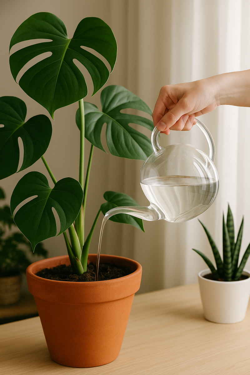Погрузите палец в землю на глубину 2–3 см. Если грунт сухой — можно поливать. Если слегка влажный — подождите пару дней. Лишняя влага в условиях пониженного испарения может привести к загниванию корней.