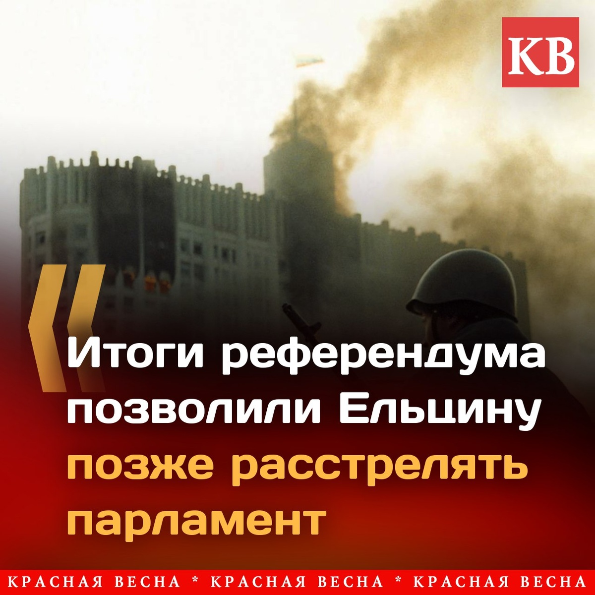 Результаты апрельского референдума 1993 года, на котором народ поддержал президента России Бориса Ельцина, позволили ему в октябре расстрелять парламент, рассказал политолог Сергей Кургинян в статье «Крутой поворот», опубликованной в газете «Суть времени» № 637. Политолог напомнил, что в апреле 1993 года по инициативе команды тогдашнего президента страны Бориса Ельцина в стране был проведен референдум. На нем граждане России должны были определиться, доверяют ли они самому Ельцину и проводимому им курсу. 📖 Читать продолжение: Итоги референдума позволили Ельцину позже расстрелять парламент — Кургинян @ia_rossa ✍️ #ИАКВ #ИАКВ_аналитика #Кургинян