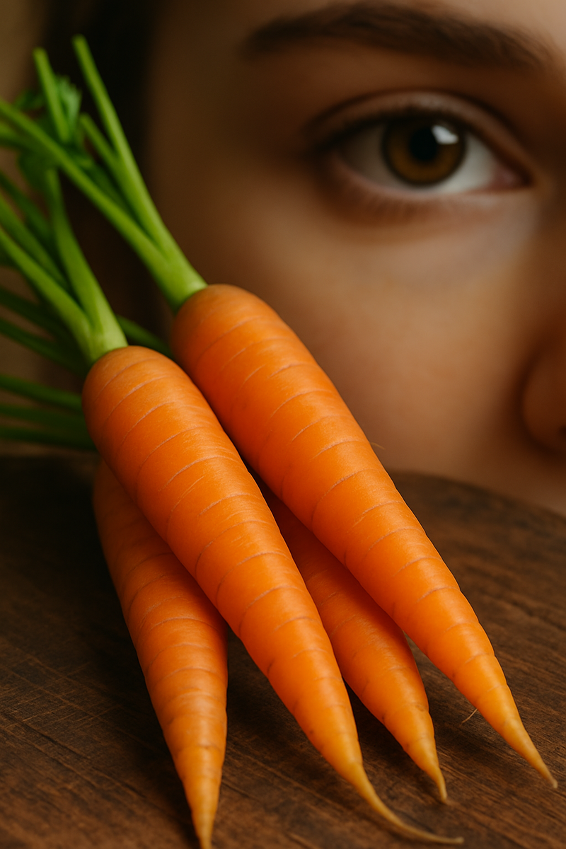 Откуда взялась морковная легенда? С детства нам твердили: «Ешь морковку — будешь хорошо видеть». Возможно, вы тоже слышали, как пилоты британских ВВС якобы ели килограммы моркови, чтобы лучше видеть в темноте. Сказка или правда? Почему именно морковь — и действительно ли она способна улучшить зрение? Сегодня мы разберёмся, что стоит за этим устойчивым мифом. Что наука говорит о связи между морковью и здоровьем глаз? Какие вещества действительно влияют на зрение? И самое главное — можно ли "накормить" себя острым зрением? Морковь — один из лидеров по содержанию бета-каротина, провитамина, из которого наш организм синтезирует витамин A. Именно он играет ключевую роль в формировании зрительного пигмента — родопсина, который необходим для того, чтобы видеть при слабом освещении. Недостаток витамина A может привести к ночной слепоте, сухости глаз и другим офтальмологическим проблемам. Так что в каком-то смысле утверждение «морковь полезна для зрения» имеет под собой основу. Но вот важный