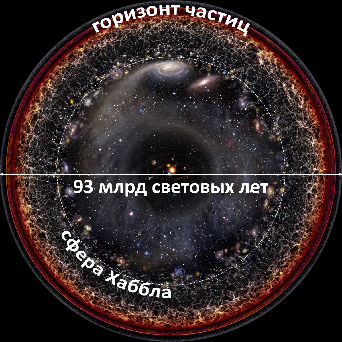 Сферу Хаббла часто путают с границей наблюдаемой Вселенной, но это принципиально разные концепции. Наблюдаемая Вселенная ограничена горизонтом частиц - максимальным расстоянием, которое мог пройти свет с момента Большого взрыва. Этот горизонт составляет около 46,5 миллиарда световых лет, что значительно больше радиуса Хаббла.