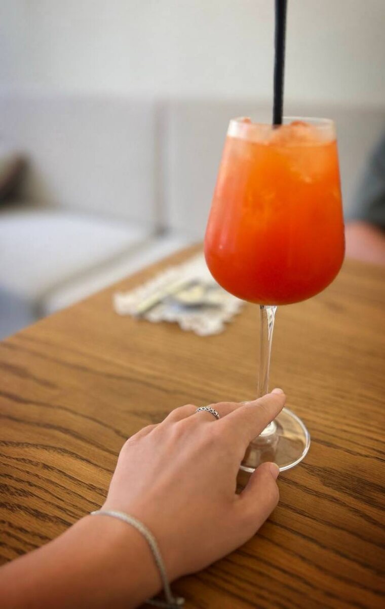 ➖вчера изучила урок про алкоголь и его влияние на ГВ. Теперь прохожу практику. Mango spritz, пожалуйста. Провернули с муженьком схему сдачи детей бабдедам и сбежали на обед ВДВОЕМ. При наличии двух детей это почти анрил.