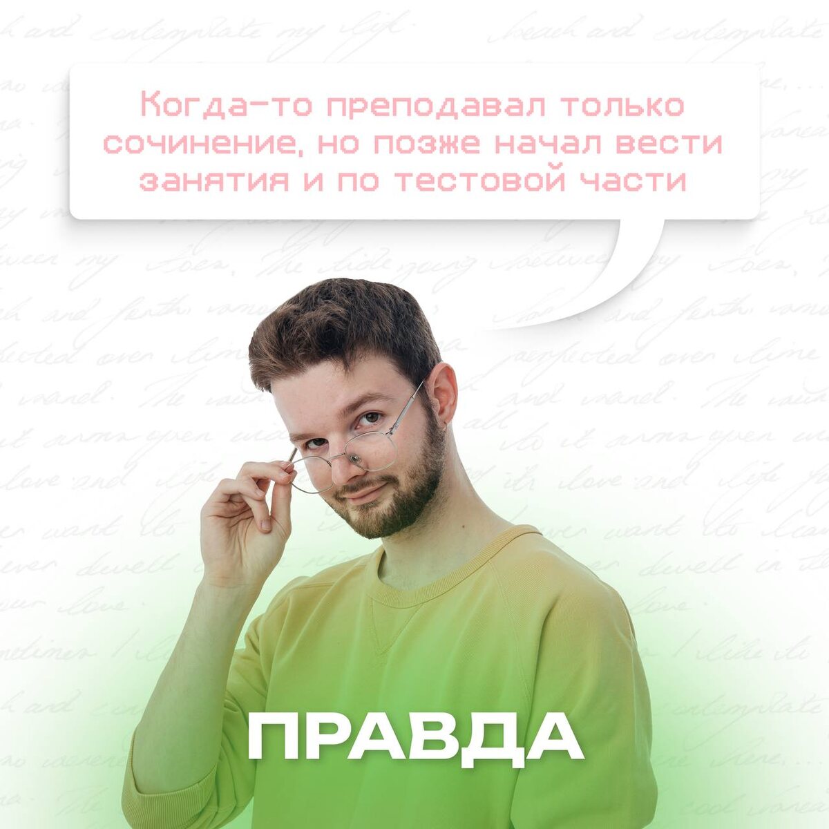 В ответ на пост Тоже правда: когда я только начинал работать в онлайн-образовании в 2016, я заведовал только сочинением. О тестовой части рассказывал мой коллега (да, мы буквально были Андреем и Нурланом) Скажу честно, сейчас мне ГОРАЗДО комфортнее преподавать и то, и то, потому что я знаю ВСЁ, а потому могу принести ученикам гораздо больше пользы. Но фокус только на сочинении в течение нескольких лет дал бесценный опыт и понимание того, как именно его нужно преподавать, писать и анализировать Кстати, во втором сезоне Летней школы я обязательно покажу вам, как я проверяю сочинения, и расскажу о некоторых крутых лайфхаках, которые помогут вам писать лучше и быстрее Следите за новостями 😏