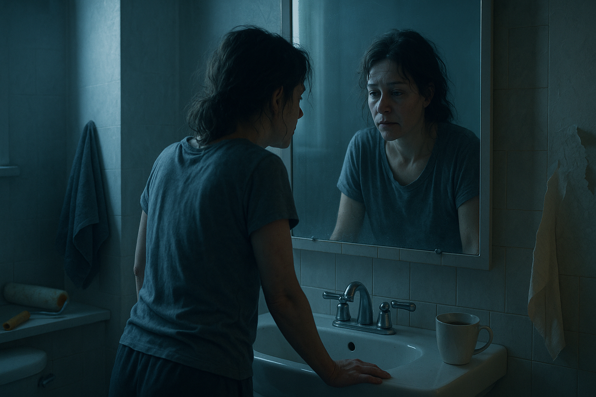Она слезла со стремянки, молча зашла в ванную, посмотрела в зеркало.