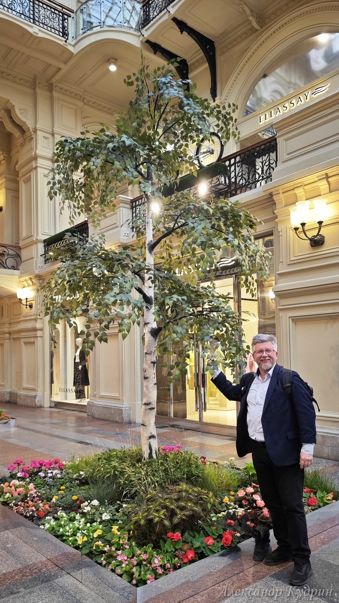 Захожу в ГУМ и глазам не верю! Куда это я попал: в исторический универмаг или в оранжерею тропического ботанического сада? Если снаружи ГУМ напоминает цветочный дворец, то внутри это настоящий сад, где история и ботаника сплелись в одном танце! Под этими легендарными стеклянными сводами, которые помнят и царскую Россию, и советские времена, теперь царят совсем другие посетители - тысячи цветов! И знаете, что самое удивительное? Здесь каждый цветок, как актёр на сцене. Бегонии - солисты, колеусы - яркие статисты, лобелии - нежные балерины, а дельфиниумы - высокие кавалеры в синих фраках. И все они выстроились вдоль линий ГУМа, будто готовятся к параду! А этот запах! Он не просто витает в воздухе — он играет с вами: то нежно обволакивает ароматом пеларгоний, то бодрит пряными нотками тагетиса. Идешь по главной галерее и кажется, будто гуляешь по летнему саду, только вместо неба над головой — легендарные стеклянные купола. Кстати, о куполах, они тут не просто так. Даже если на у Показ