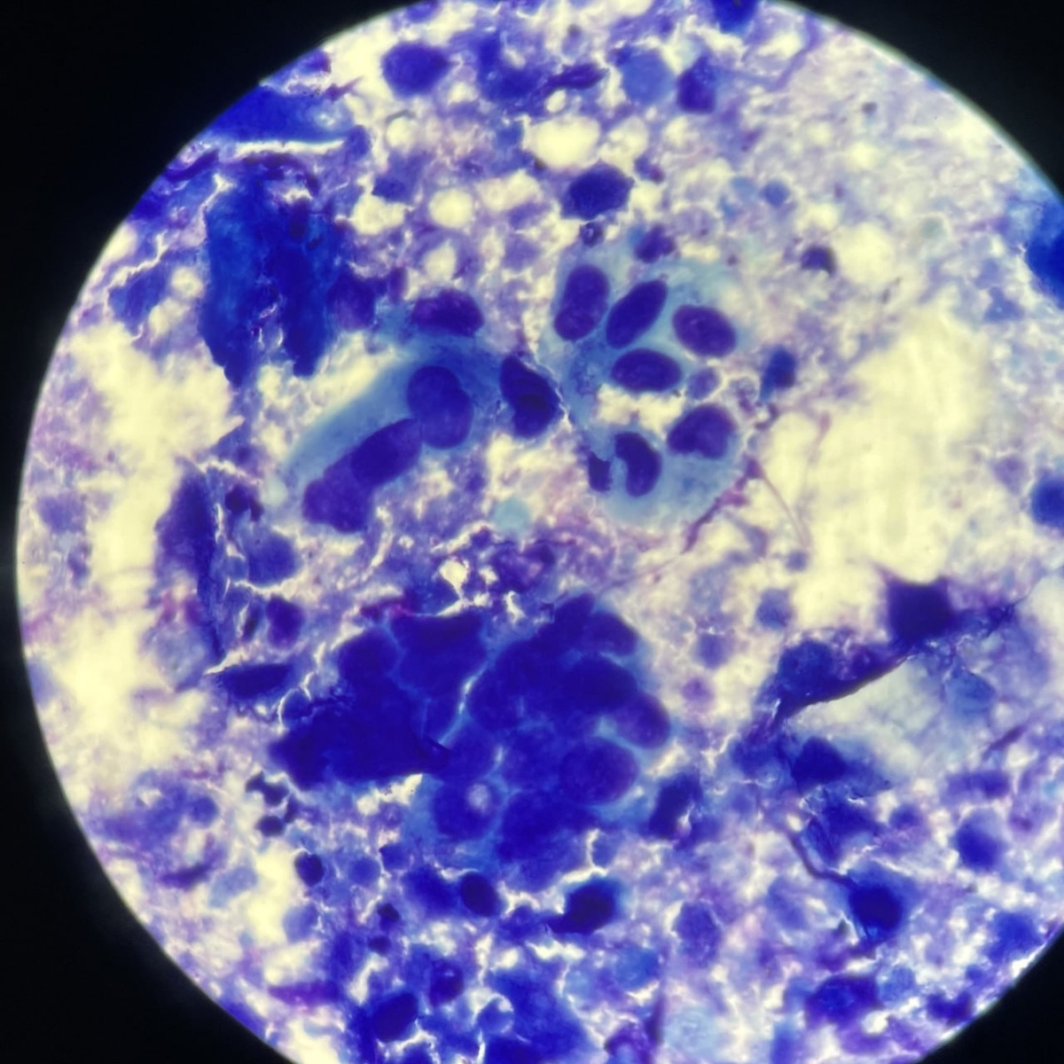 Материал ТАБ печени. Объектив 100x.