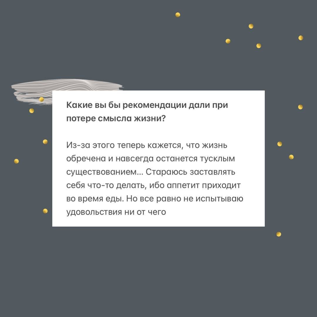 Вопрос от подписчика: Ответ: 💬Вы же не поверите мне если я скажу, что смысла жизни, как такового, не существует и проблемы начинаются если мы требуем от себя его поиск? 👀 Поэтому пойдем сложным путем ) Неплохо зарекомендовала себя библиотерапия 🔘Начните с книг «Дар» и «Выбор», автор Ева Эдит Эгер 🔘Переключитесь на «Полночную библиотеку» Мэтта Хейга 🔘Отшлифуйте Виктором Франклом, например через книгу «Сказать жизни Да» Но и над моим первым предложением тоже рекомендую поразмышлять ☝