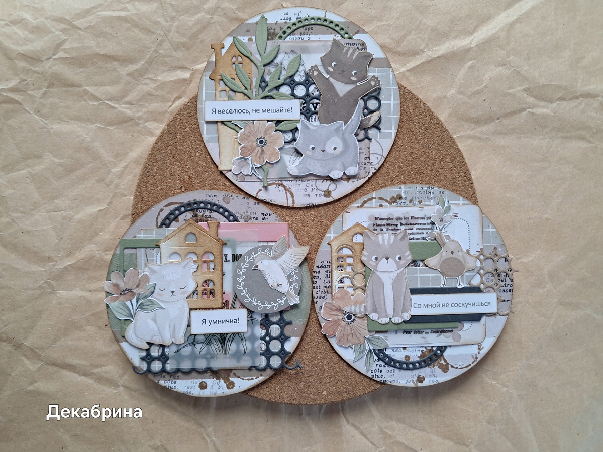 круглых карточек. После работы над Фотопапкой про Батончика у меня осталось много обрезков скрапбумаги. В таком случае я всегда делаю карточки.