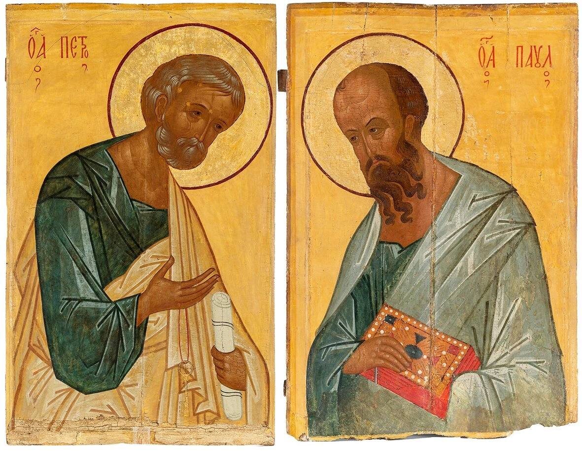 День сегодняшний – 12 июля – память первоверховных апостолов Петра и Павла. На фото – их иконы из поникаровского чина (в собрании ГМЗРК).