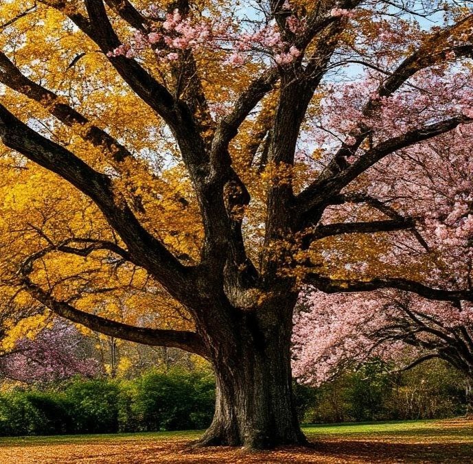 #сны #пожизневое Сегодня во сне был красивый момент, когда мир превратился в компьютерную игру, не все это пережили. Художник, считавший себя последователем европейской классической живописи и девушка, обожавшая красоту востока всегда думали, что не подходят друг-другу, но узнав, что это последний день, провели его вместе, были счастливы и оставили после себя фреску, на которой соединяются осенний дуб и цветущая сакура.
