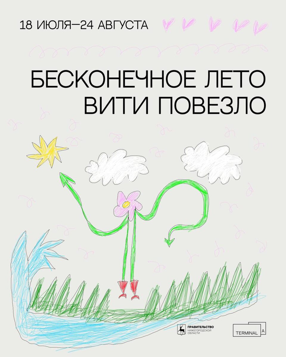С 18 июля по 24 августа в Терминале А пройдёт выставка «Бесконечное лето Вити Повезло». Художник Витя Повезло предлагает взглянуть на мир глазами ребёнка — наивного, искреннего, нелогичного. Пространство выставки превращается в двор, который представляется настоящими джунглями, полными приключений. Здесь добро и зло не разделены строго, обитатели джунглей могут быть одновременно смешными и пугающими, трогательными и странными. Как и в игре, где всё возможно, а смысл рождается на ходу. «Бесконечное лето» — это не сезон, а состояние. Время, когда воображение не имеет границ, а каждый куст или палатка могут оказаться входом в другую реальность. 😄 Мероприятия Нижний Новгород. Я местный!