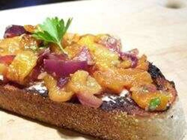 Брускетта с обжаренным сладким красным перцем Это быстрая и легкая закуска или гарнир, красочный и вкусный. Вы получите комплименты. Мои сыновья съедают его за считанные минуты! ⌛ Подготовка: 5 мин. ⏰ Приготовление: 15 мин. 🍴 Количество: 12 порций Ингредиенты ✅ 500 гр итальянского хлеба ✅ 2 столовые ложки оливкового масла ✅ 1 (500 гр) банка маринованного сладкого красного перца ✅ 3 зубчика чеснока, измельченного ✅ 1 помидор, очищенный от семян и измельченный ✅ 1 чашка измельченного свежего базилика ✅ 1 луковица, измельченная ✅ 3 чайные ложки бальзамического уксуса Инструкция приготовления 1. Разогрейте бройлер в духовке. 2. Нарежьте буханку хлеба на порции толщиной 2.50 см. Смажьте каждый ломтик с одной стороны оливковым маслом. Обжарьте ломтики со стороны, обращенной к маслу, до золотистого цвета. В миске среднего размера смешайте запеченный перец, чеснок, помидоры, базилик и лук. Равномерно посыпьте смесью каждую порцию тостов. Сбрызните бальзамическим уксусом. Подавать н