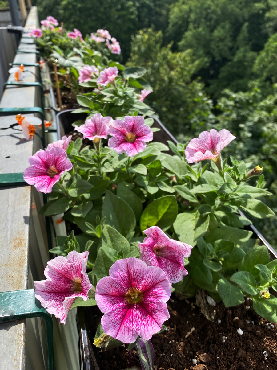 Петуния Опера Суприм Расбери Ай F1 Госпожа петунья распушилась. Конечно, на сегодняшний день, она не выглятит так, как я себе представляла. По моим представлениям у меня уже должна была быть пышная шапка из цветов. Что исправить - посадку сделать в последнюю неделю марта. Что исправить - прищипывать как только появится макушка из 6 листьев. Теплая погода началась позже, чем обычно. Петунья уже готова была переезжать в боьшие объемы, но из-за ораниченного места некторые растения пересидели в объеме 0.5л. Они в итоге остановились в росте, их я не сажала. Те, кто из 0.5 был пересажен сразу в 2 листра, сейчас и растут в моих кашпо. Но с ними тоже не все однозначно. Как я сказала ранее, из-за погоды я их долгое время не пересаживала в кашпо, в следсвтии чего, растениее пересидело и начало израстаться. Петунья не для маленьких оьъемов. Как только я пересадила 1 куст в 12 литров, он сразу пошел в рост. Что исправить - не затягивать с пересадкой в большие в объемы. Наверное, это пока все ошиб