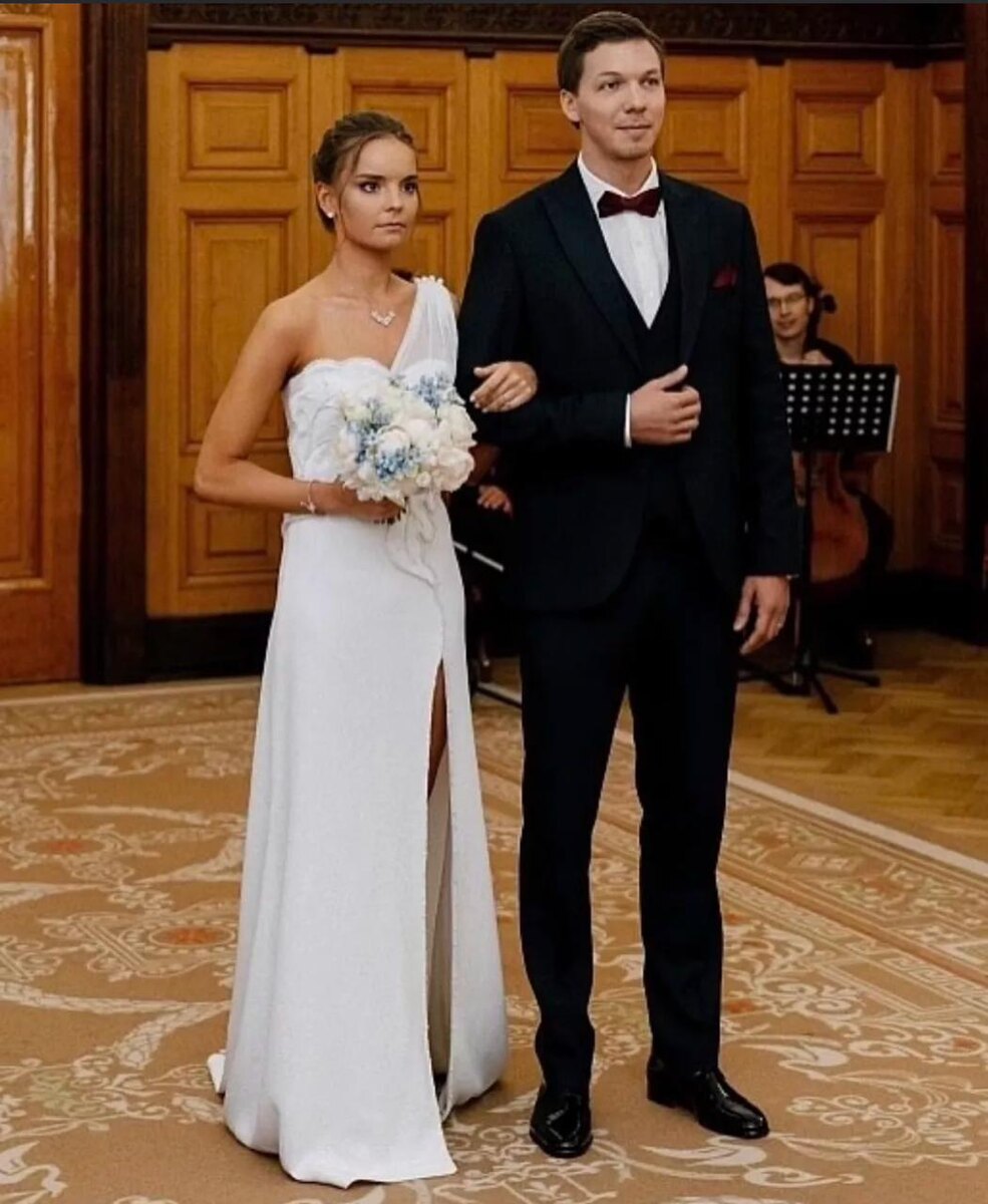 26-летняя Дина Аверина выбрала образ, в который невозможно не влюбиться. Белое платье от коллаборации «Хохлома x Алёна Ахмадуллина» стало настоящим воплощением современной русской невесты. Лёгкий шлейф, полупрозрачные детали, мягкая линия плеч всё выглядит сдержанно, но при этом очень выразительно.