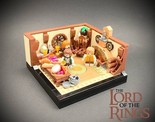Творение T-86 (swebrickRLUG) — мини-диорама 16×16 с Мерри, Пиппином и Сэмом после ухода Фродо в Валинор. Мерри подбрасывает дрова в костёр, Пиппин готовится к обеду, а Сэм наблюдает за друзьями с улыбкой. Очаровательная детализация и атмосфера Хоббитона в каждой детали. Выглядит потрясающе!