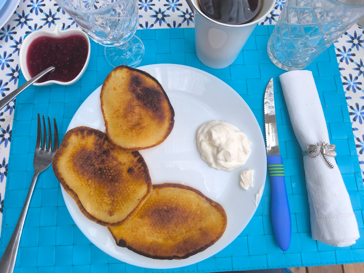 Утро было восхитительным. Я проснулась, а меня уже ждал вот такой завтрак на столе. Этот завтрак буду хранить в своём сердце. До обеда была жара. Работать в саду было невозможно. Только перетаскивала шланг туда-сюда. Утром поставили зонт над огурцами. Предполагалось, что от солнца. Но пригодилось от всего. Смородина спеет сладкая, крупная. Стоило машину поставить в ремонт, как у меня образовались неотложные дела в посёлке: аптека, ПВЗ, хозяйственный магазин. Но никуда сегодня не попала. После обеда разверзлись хляби небесные и ударил дождище. Так что мы бездельничаем, смотрим телевизор. Вечером поужинали на веранде, попили чай.