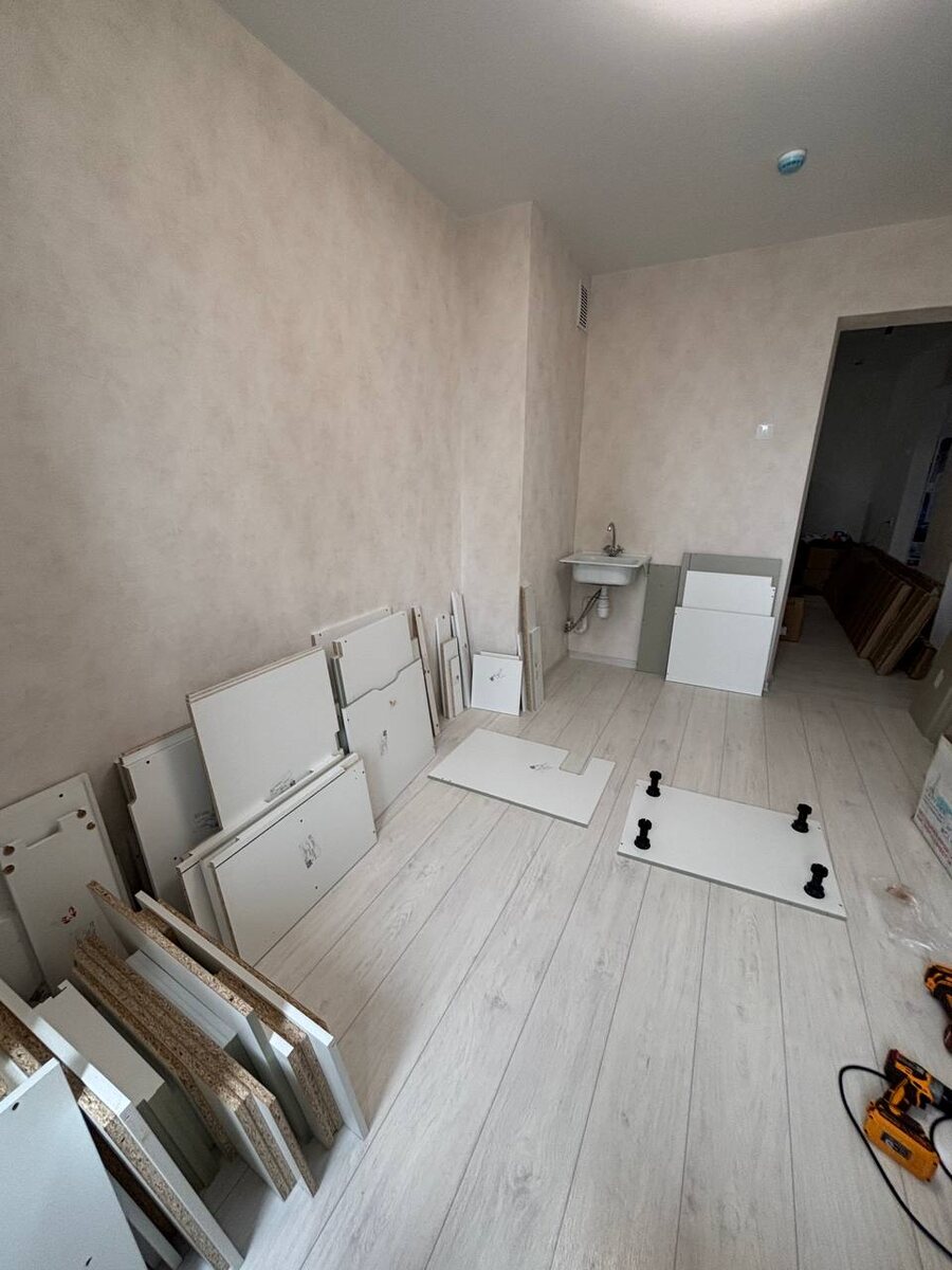 Процесс монтажа. Честно говоря я хочу кухню в таком же цвете ❤️