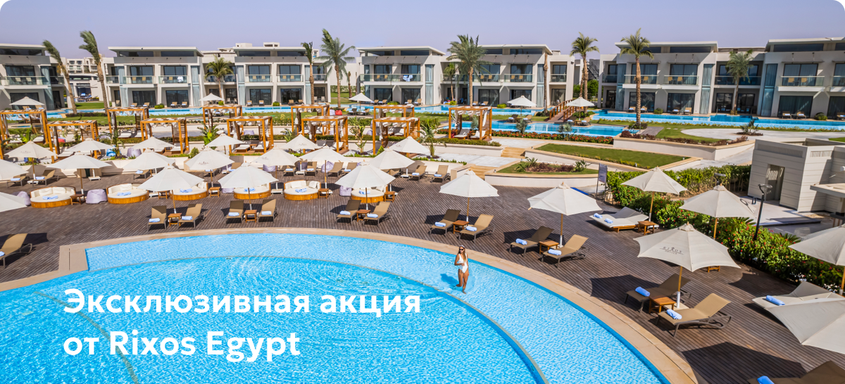 Акция распространяется только на данные отели: 🌴Swissotel Sharm El Sheikh Managed By Rixos 5* Новый комфортабельный отель в бухте Наама. Состоит из семейной зоны и зоны только для взрослых (18+). 🌴Rixos Premium Magawish Suites & Villas 5* Роскошный семейный отель с собственным песчаным пляжем – одним из лучших в Хургаде. 🌴Rixos Premium Seagate 5* Высококлассный отель с безупречным сервисом на берегу Красного моря. Rixos Radamis Sharm El Sheikh 5* Комфортабельный курортный комплекс на первой береговой линии. ✅ Официальный туроператор