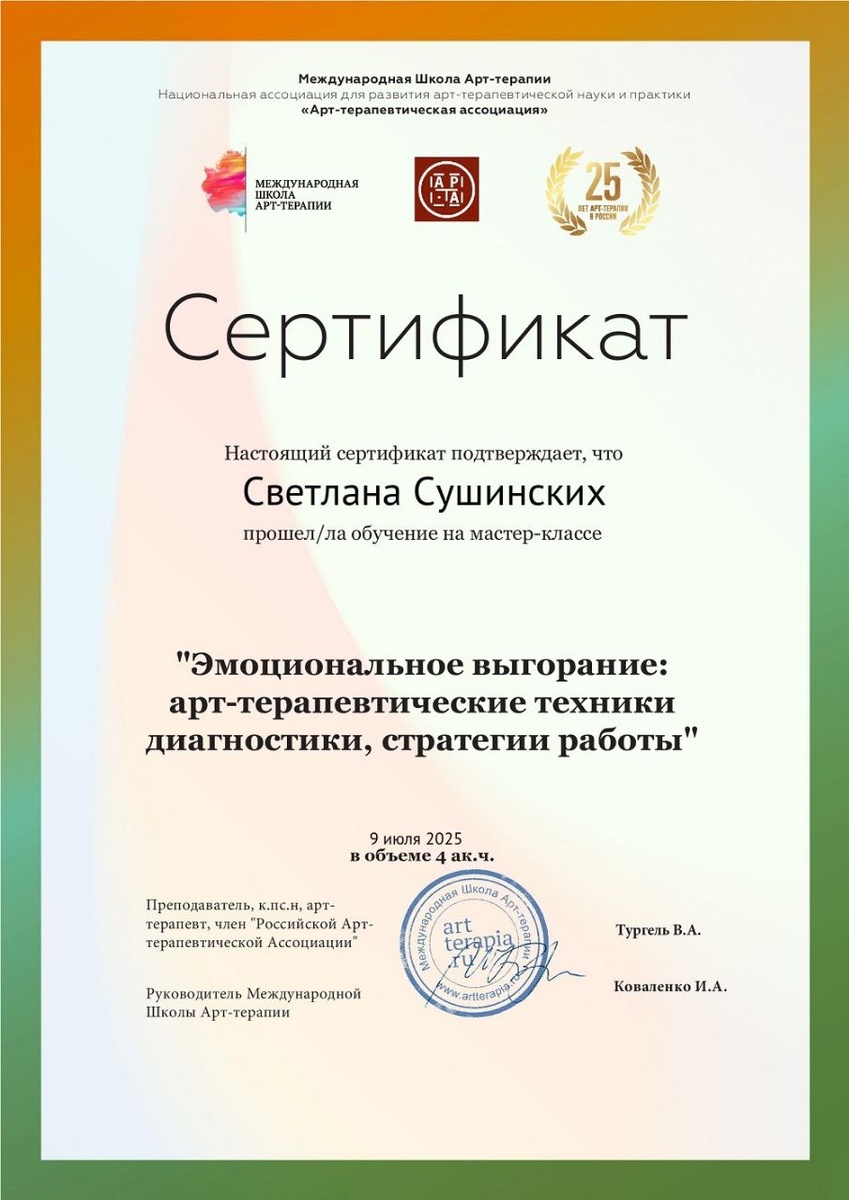 Арт-терапия для меня лично - огромная часть жизни👍,творчество дает мне столько сил, энергии, новых путей и видения ситуаций! Поэтому не перестаю осваивать новые и новые техники для работы со своими клиентами♥️