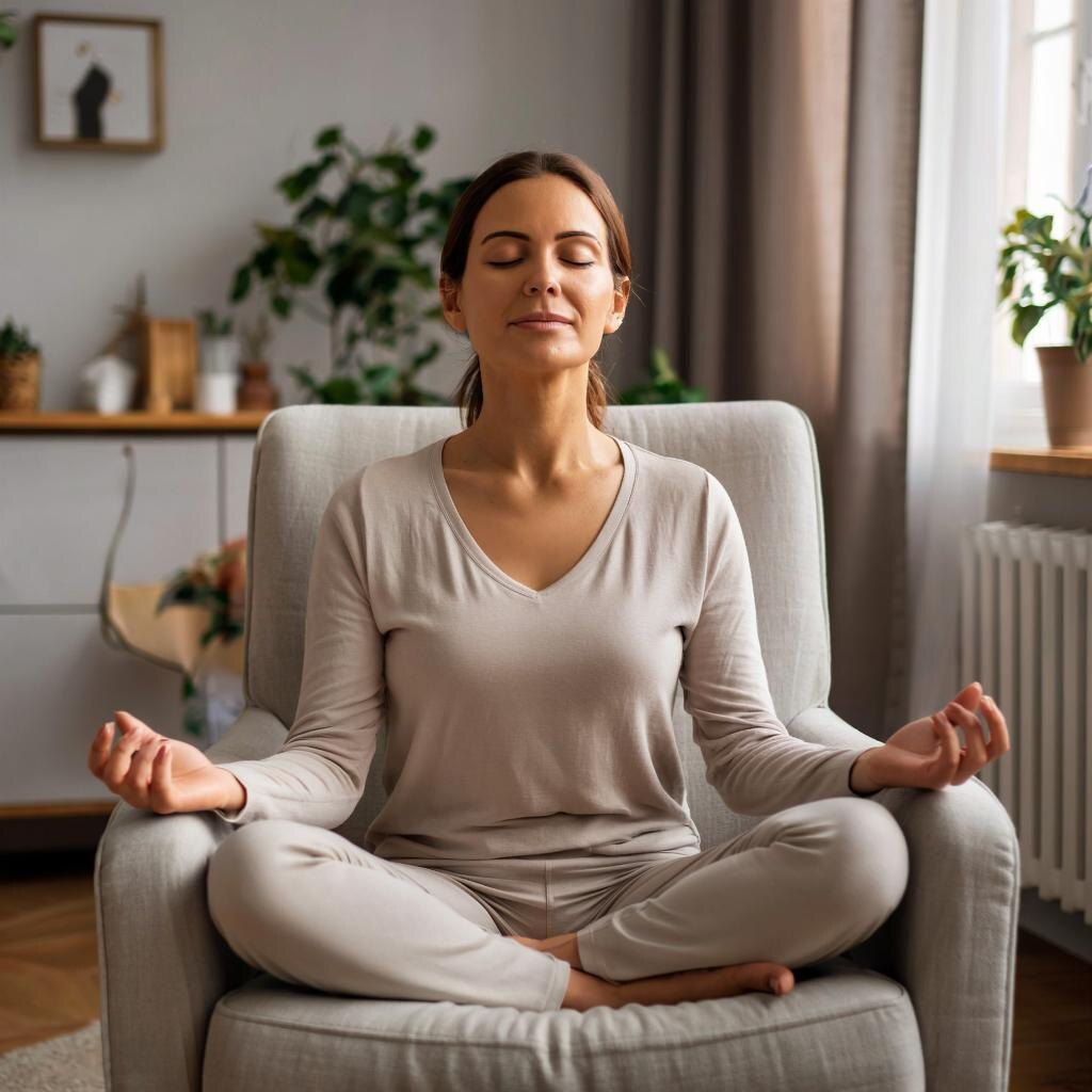 Альтернативное ноздревое дыхание (Нади Шодхана) Цель: Балансировка двух полушарий мозга и достижение глубокого расслабления.Как выполняется:Удобно сидите, закрыв правую ноздрю большим пальцем правой руки. Глубоко вдохните левой ноздрей. Затем закройте левую ноздрю средним пальцем и выдохните через правую. Продолжайте чередование сторон, сохраняя равную продолжительность вдоха и выдоха.