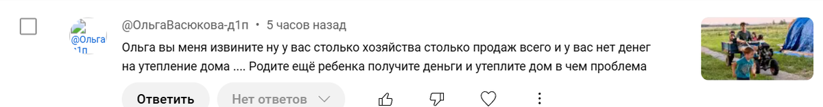 «Ольга, вы меня извините, ну у вас столько хозяйства, столько продаж всего, и у вас нет денег на утепление дома... Родите ещё ребенка, получите деньги и утеплите дом, в чем проблема».