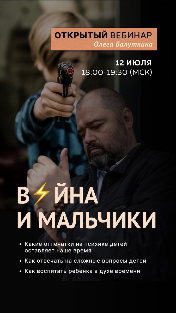 Открытый вебинар Олега Балуткина Был у меня недавно период — занимался пересмотром детских фильмов о войне. Началось всё почти спонтанно, с «Неуловимых мстителей», ну а потом как-то закрутилось. Знаете, какая главная мысль не давала мне покоя на протяжении всего этого времени? Когда и как наступил момент, что вместо честного разговора на сложную тему мы начали прятаться за маской заботы о подрастающем поколении, якобы стремясь оградить ранимую детскую психику от травмирующих переживаний? Ведь получалось же как-то у меня и моих ровесников не впадать в шок от слов «война», «враг» и прочих. Не требовалось их для нас запикивать или ретушировать. Так чем нынешние поколения другие? Если вам интересно моё мнение — в этом плане нынешние дети ничем не отличаются от нас. Совсем. А вся разница в отношениях, взглядах и ценностях исключительно привнесенная. Собственно, размышления о том, как дети воспринимают войну и что взрослые могут сделать для того, чтобы сформировать у детей м
