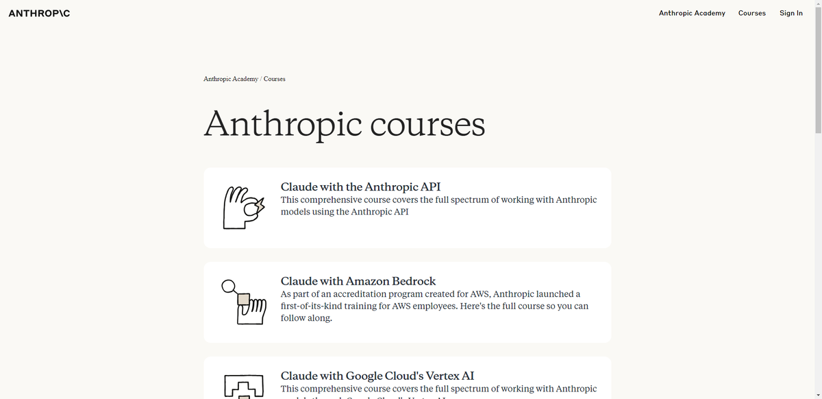 Anthropic открыла обучающую платформу на базе Skilljar — теперь любой разработчик может бесплатно пройти курсы по Claude API, Model Context Protocol и Claude Code. Платформа предлагает пошаговое обучение, практические задания и официальную сертификацию. * Обучение Claude API: курс Claude API Fundamentals охватывает базовые принципы взаимодействия с Claude и способы отправки запросов. * Model Context Protocol: отдельные модули по работе с MCP — технологией контекстного управления, позволяющей сохранять и передавать информацию между сессиями. * Claude Code in Action: примеры на практике — как с помощью Claude решать прикладные задачи, обрабатывать данные и строить пользовательские интерфейсы. * Advanced Topics: продвинутые темы по оптимизации запросов, управлению длинным контекстом и построению интеллектуальных агентов. * Интеграции с Vertex AI и Amazon Bedrock: специализированные курсы по развёртыванию Claude в облачных системах. * Сертификация: после завершения курсов вы получаете имен