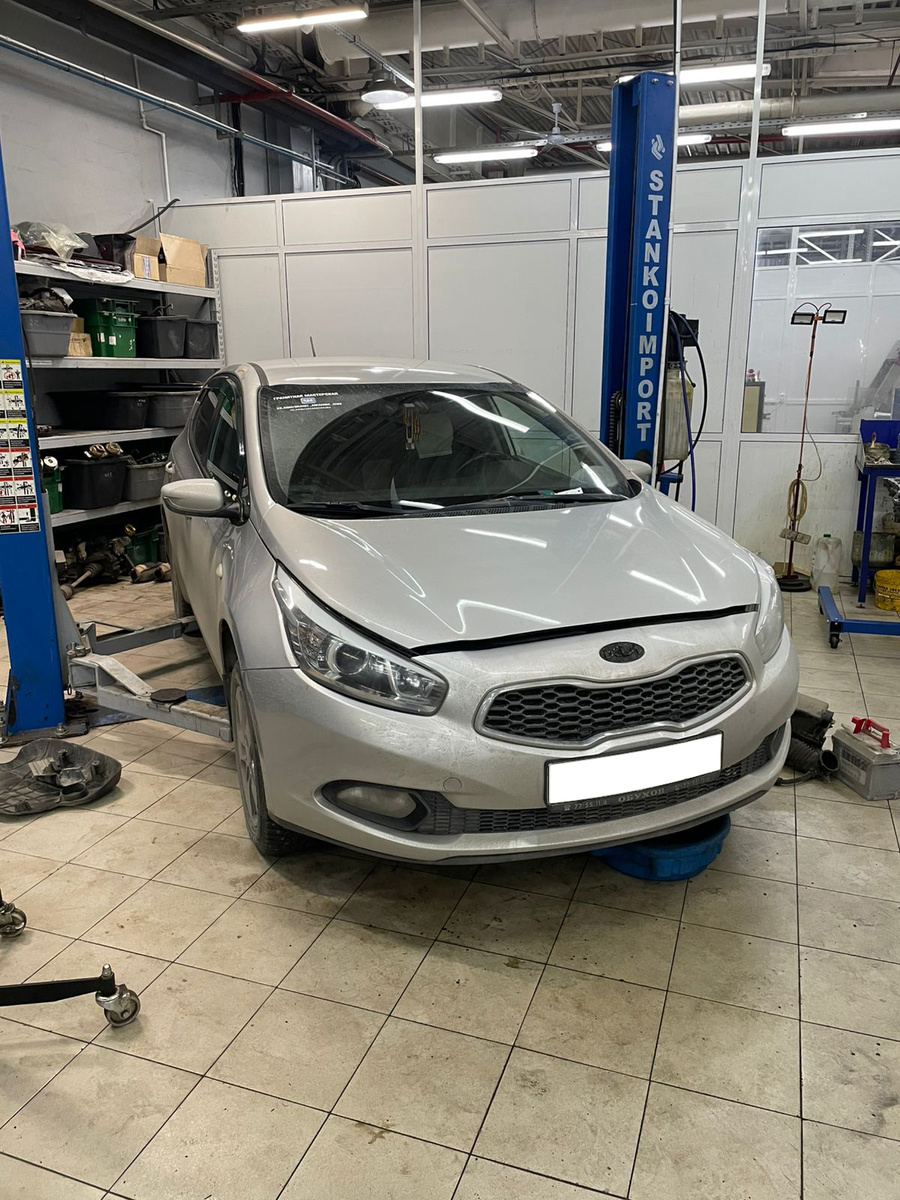 Приехал в наш сервис автомобиль Kia Ceed 2015 года выпуска, с пробегом 167 тысяч километров. Двигатель 1.6 G4FD с непосредственным впрыском топлива, проблема обыденная для подобных двигателей — повышенный расход масла, до литра на тысячу километров пробега. Помимо этого, при холодном пуске, имеется тихий, небольшой стук поршневой. Машину оставили у нас на капитальный ремонт двигателя полного цикла.