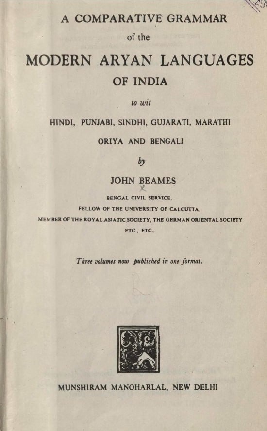 🇮🇳📖 Beames,John A comparative grammar of the modern Aryan languages of India to wit Hindi. Punjabi. Sindhi. Gujarati. Marathi. Oriya and Bengali