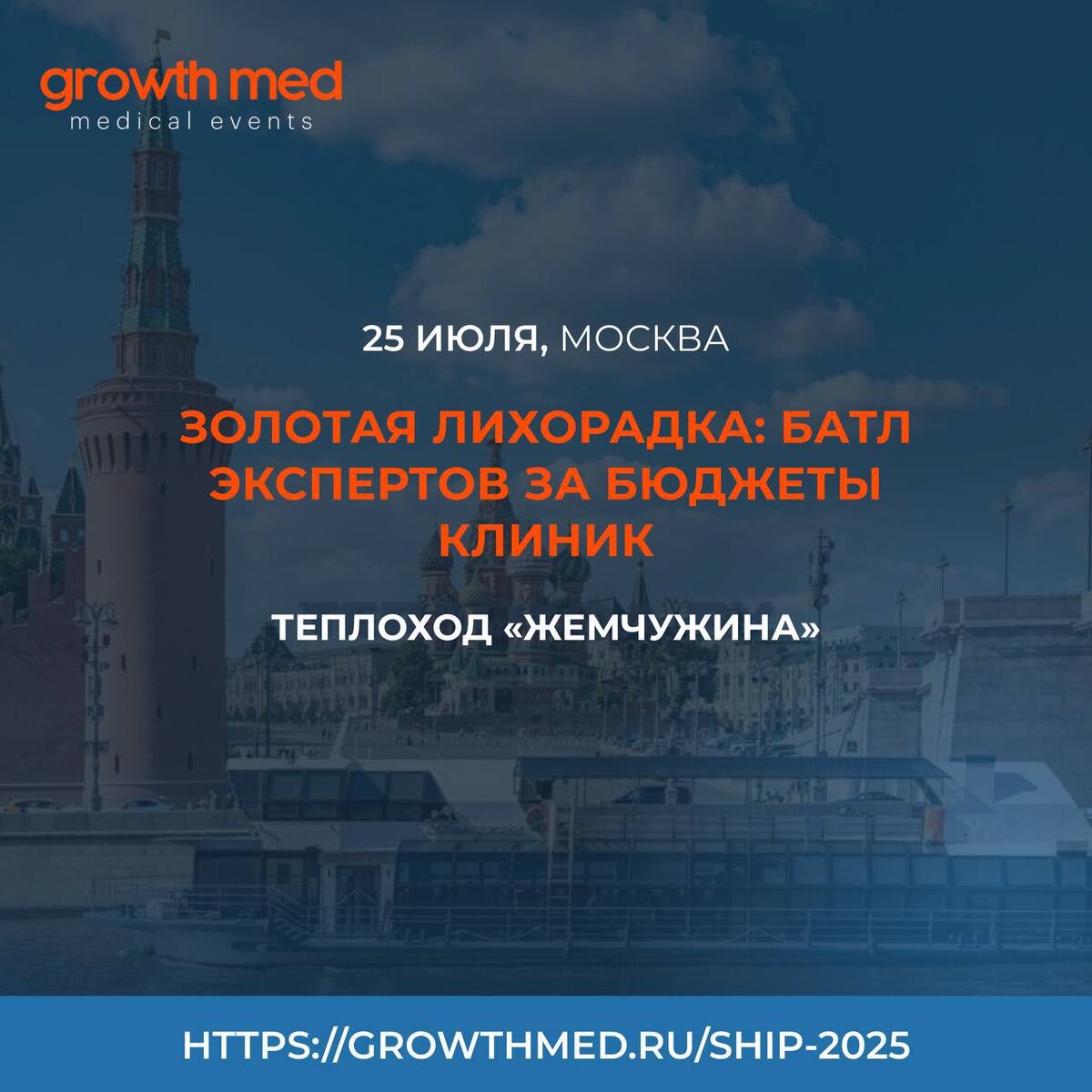 Запланируй на 25 июля маркетинговый батл на борту теплохода «Жемчужина» Один вечер — один шанс показать, на что ты способен. На борту — топовые маркетологи и владельцы клиник. Ставка — реальный бюджет. И контракт с крупнейшими медцентрами страны. Тема: Золотая лихорадка: битва за внимание и бюджеты ведущих клиник России. Кто даёт бюджеты: — Многопрофильный центр «Медицея» — Институт красоты МОСИТАЛМЕД — ДНК-клиника — Сеть стоматологий Доктор Келлер — ГУТА Клиник — Федеральная сеть клиник «Линлайн» Почему ты должен быть там: 🔹 Прямой выход на владельцев и директоров медбизнеса 🔹 Живой формат: не лекции, а батл 🔹 Реальные кейсы, цифры, стратегии 🔹 Нетворкинг без галстуков, но с результатом 🔹 Теплоход, Москва-река и атмосфера, где рождаются партнёрства Место действия: Москва, теплоход «Жемчужина» 🗓 25 июля 🚢 Отправление — по расписанию, как и большие перемены 📍Успей зарегистрироваться: https://growthmed.ru/ship-2025/?utm_source=mf Увидимся на борту. Наши страницы: 📱 VK ?