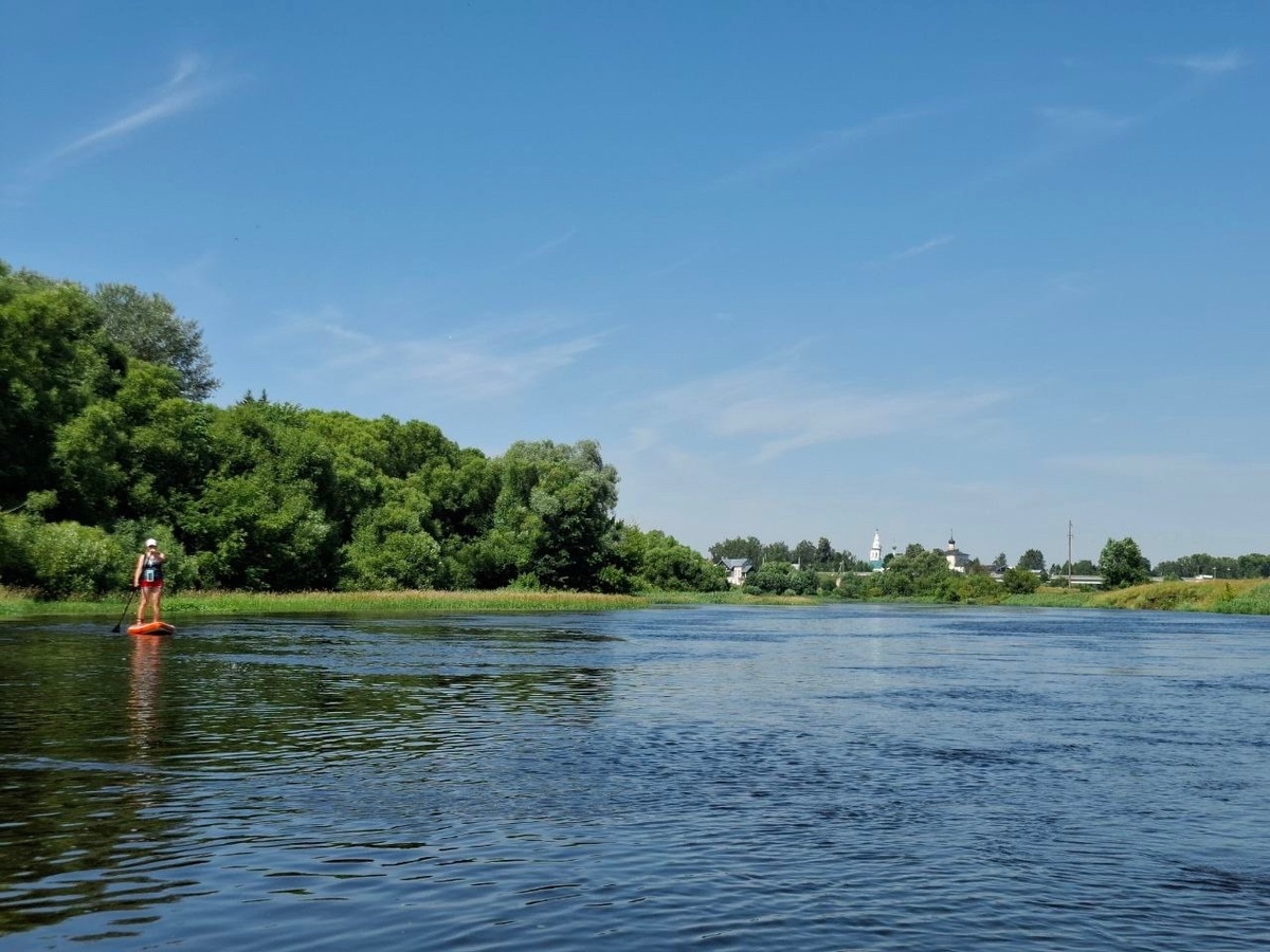 13:30. Со второго раза старт удался. И вот мимо уже проплывают живописные храмы, которые хорошо видны с воды. Спокойный ход сапа дает возможность рассмотреть их с разных ракурсов и сфотографировать. И эта сельская православная красота XII - XIX веков - главное преимущество маршрута.