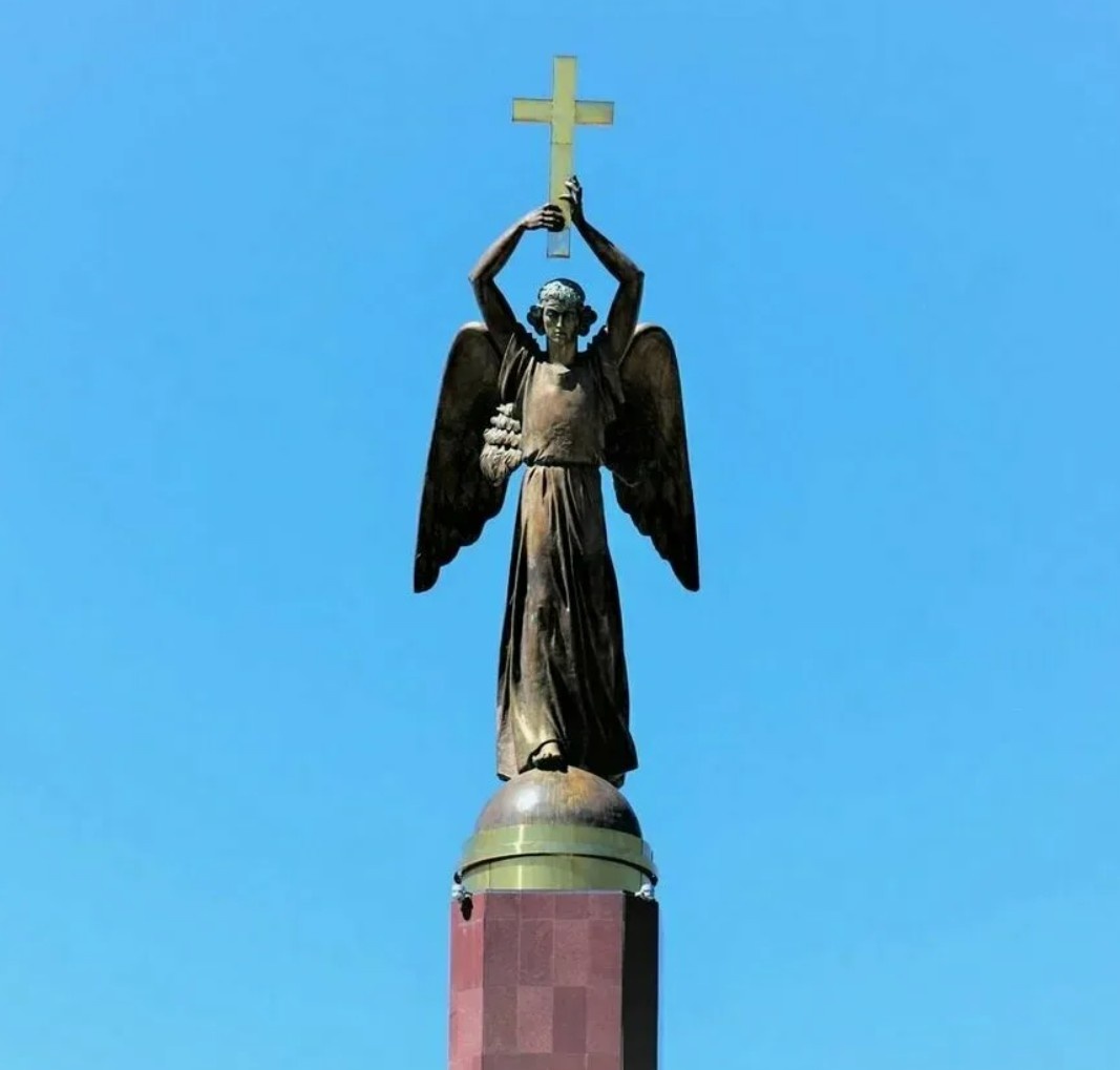 На листах проекта монумента "Ангел Хранитель" стояло немного другое название: "Памятник основания Ставрополя". Но суть самого нынешнего монумента не изменилась. Монумент расположен на площадке возле бывшего кинотеатра "Экран", 32-метровый столб с бронзовой фигурой ангела на самом верху. Столб вышел гранитным, но не он монолитный и не был собран из блоков. Из за технической простоты и сейсмической безопасности центр колонны представляет собой труба, а уже вокруг нее на каркасе выложили облицовочную плитку. Ангел Хранитель, как бы возносит крест на городом Ставрополем, одной ногой шагает, а другой опирается на позолоченную полусферу. У подножия монумента расположен бассейн, которой радует своей свежестью в жаркие денечки. Статую ангела отлили в Москве, там это оказалось ничуть не дороже, чем в том же Минске. Монумент "Ангел Хранитель" воспарил над городом Креста к 225-летию Ставрополя. Адрес: г. Ставрополь, Александровская площадь.