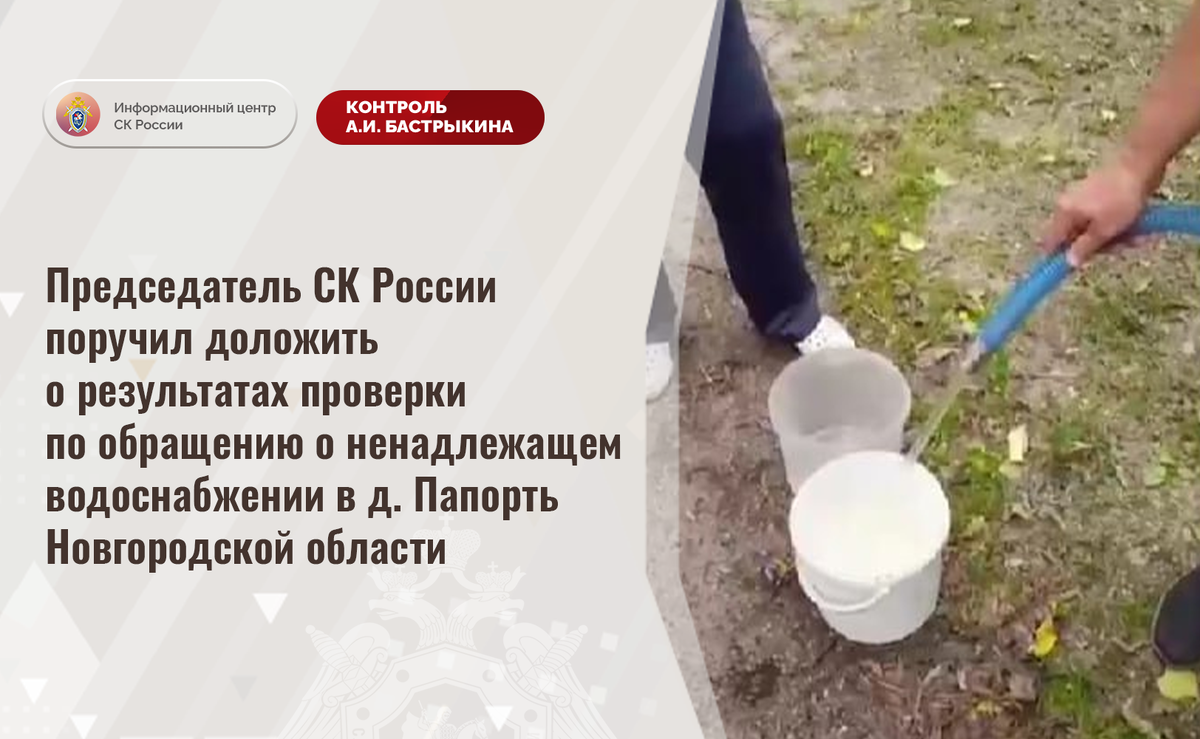Председатель СК России поручил доложить о результатах проверки по обращению о ненадлежащем водоснабжении в д. Папорть Новгородской области