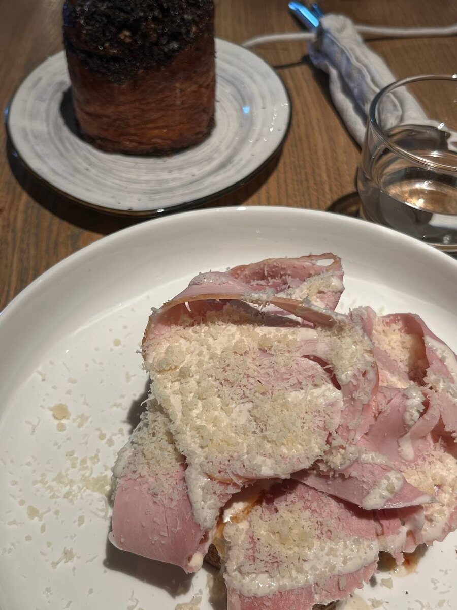 Яйцо пашот и соус тоннато между бриошь и прошутто. Адаптация Вителло тоннато под формат завтрака, идея мне понравилась. На вкус интересно. Но, бриошь слишком сладкая, будто сахарная, что немного перебило вкус самого соуса. Маковая булочка Ожидал слоеного теста, как краффин, но здесь именно булка такой формы. Много мака. Для меня по уровню сладости выше среднего, как в бриошь, чувствовал именно сахар. В целом норм. Осталось попробовать что-нибудь из вечернего меню, но в целом еще много интересных позиций в завтраках есть :)