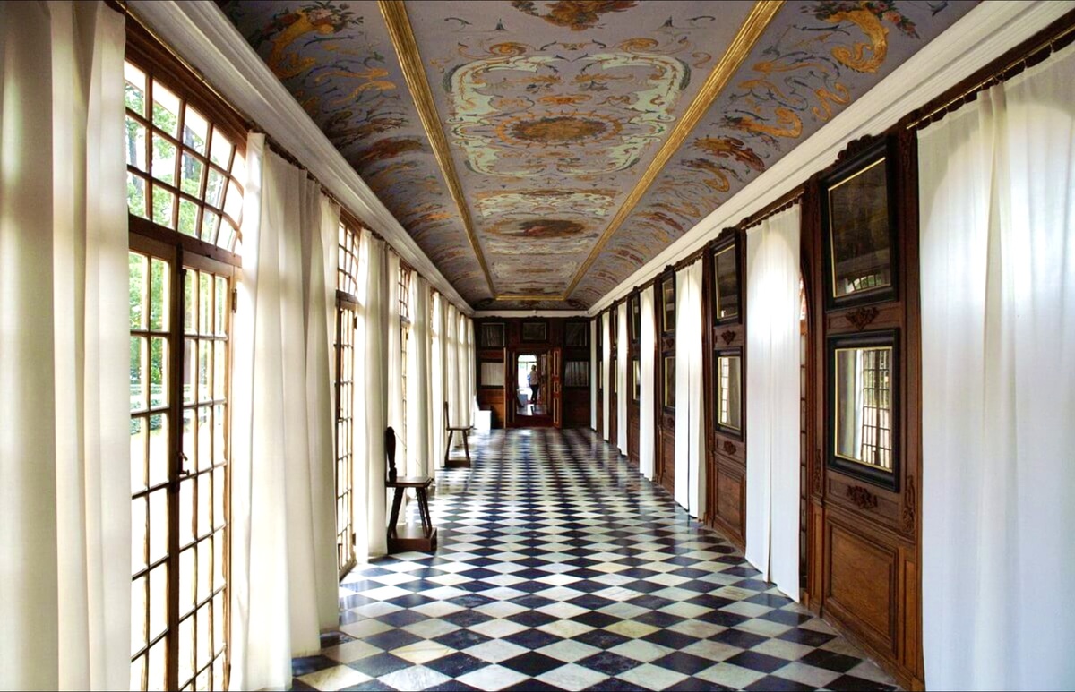 Пришла одна идея. Иногда наблюдаю в архитектурных стилях шахматный рисунок. Могу предположить, что использование шахматного рисунка используется давно. Мне вспомнился знаменитые парадные интерьеры Петра Первого во дворце Монплезир. Черно-белый в шахматном порядке мраморный пол. Подобного рода орнамент придаёт архитектурной форме динамику, особенно если шахматный рисунок располагается по диагонали. С точки зрения ощущения пространства, такой прием его расширяет, что можно использовать при желании визуально увеличить площадь.