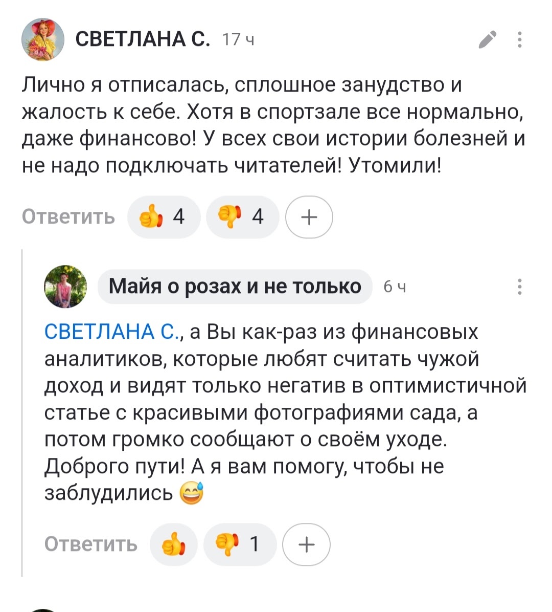 За окном потемнело, нахмурилось и угрожающе гремит, но это не самое страшное в жизни. Кого-то бесит Майя Анатольевна со своей фотографией из спортзала? До свидания, мил человек👐. Как говорит моя любимая невестка Маша "у Вас снова чистка рядов". Отряд не заметил потери бойца...🙋♀️ А со всеми поклонниками сада продолжаем приятное общение. Розы, да, они такие всеми любимые, казалось бы... Но, у меня есть одна близкая подруга, которая полностью разрывает все шаблоны, а я её очень люблю, не смотря ни на что. Если вдруг тебе плохо и грустно, надо рассказать такое, о чём не должны знать даже самые близкие, звоню Марине. Приедет всегда. Она знает мою нелюбовь к готовке, поэтому моя кухня в её полном распоряжении, а я - на подхвате. Но, надо быть готовым к тому, что цветы и всё прекрасное в моём понимании для Марины не существуют. Представляете себе, она равнодушно проходит мимо цветущих роз😳. Нет, не так...Она вообще не поворачивает голову в сторону всего вот этого. Зато честно. Уважа