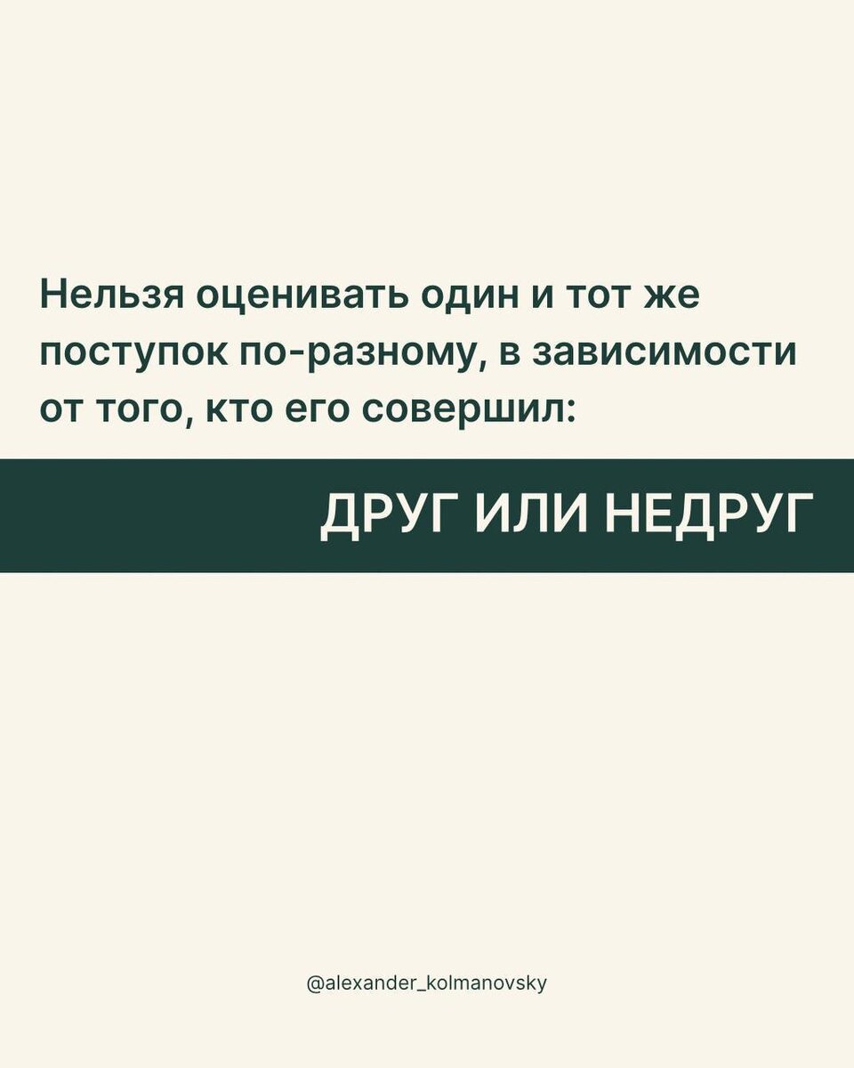 Нельзя оценивать один и тот же поступок по-разному, в зависимости от того, кто его совершил: друг или недруг