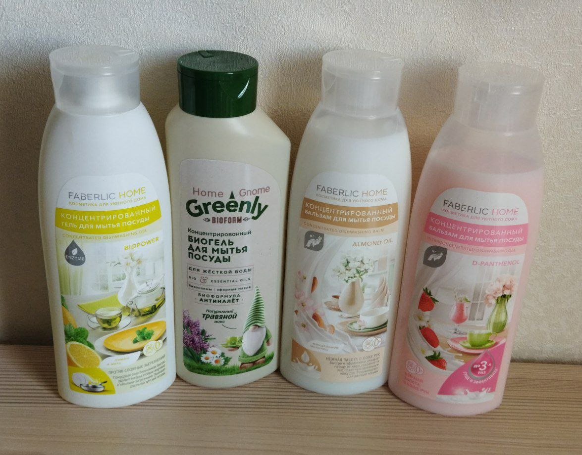 Купила в запас гели для посуды Фаберлик. Нравятся пока, пользуюсь с удовольствием - кожу рук не сушат, отмывают отлично, если покупать через сайт самому, то и не очень дорого. На год хватит 😊