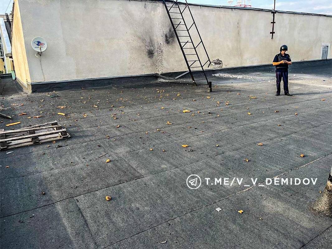 ❗Беспилотник ВСУ атаковал ещё один гражданский объект в Белгороде Как сообщил мэр Валентин Демидов в своих соцсетях, информации о пострадавших к этому часу нет. Дрон сдетонировал на крыше, повредив кровлю и фасад здания. Возгорания не произошло. Оперативные службы продолжают работу, на данный момент территория обследована, фрагменты БПЛА вывезены.