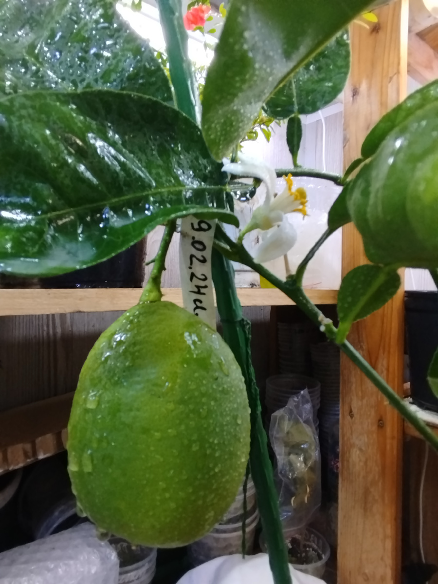 Раннее утро, дуновение ветерка с балкона наполнило комнату нежным ароматом. "Кто-то из цитрусят зацвёл, необычный аромат, очень нежный."- подумала я. На вечернем осмотре обнаружила, что это один единственный цветок лимона Борнео. Сегодня хочу поделиться с вами своими наблюдениями. Борнео - это гибридный лимончик, в его генетике есть бергамот, поэтому листья и шкурка плода имеют аромат бергамота. Я пока не пробовала сам плод, но лист очень насыщенный этим ароматом. Растение неприхотливое, легко прививается и стартует в рост. Привитое растение на годовалый сеянец зацвело уже в год и оставило плодик. Хорошая сила роста и некапризность Борнео делает его хорошей альтернативой лимону Меларозе. ( По моим наблюдениям мелароза прививается труднее, ей нужен сильный подвои, иначе растение сильно тормозит). Цветы крупные, очень красивые, ароматные. Бутоны при хорошем освещении с фиолетовым оттенком. Плод яйцевидный, крупный. Этому лимончику 6 месяцев и он продолжает набирать размеры, хотя само