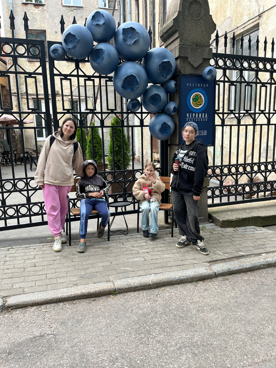 На днях были с детьми в Выборге. Так приятно, что стали больше следить за городом, мы много ходили и заметили много реставраций в процессе или уже законченных, больше интересных мест, кафе с интересным дизайном. Тут старинные ворота украсил новый ресторан «Черника»: А в этом заведении не только снаружи круассан, но и лампы внутри в виде круассанов: Пекарня с круассаном называется «Хочу тебя» )) Ходили и радовались на каждом шагу, дети просили везде сфоткаться. Забежали, конечно, на рынок с финскими товарами, покормили голубей на центральной площади и ещё много всего успели всего за один день. На остров с замком в этот раз не ходили. Посмотрели, что открыли наконец башню Олафа, но цена для всех 500₽, даже детям нет скидок. Расстроились. Зато там появился лифт для инвалидов или людей временно ограниченных в движениях. Но там надо заранее оставлять заявку. ✨✨✨ О том, что посмотреть в Выборге, если приедете с детьми и о необычных достопримечательностях вроде ретро-трамвайчика и Лося-с