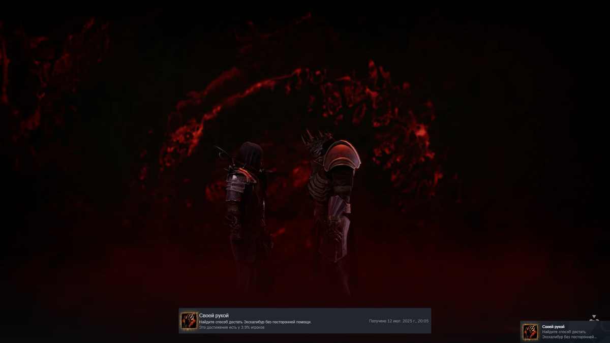 2. После получения Экскалибура вы увидите сюжетные диалоги со спойлерами финала первого акта. Вы не только увидите спойлеры, но из-за не понимания происходящего сломаете погружение в игру и все впечатления. Не стоит доставить Экскалибур не по сюжету, кроме как для получения достижения. Еще одной механикой бесконечно складывающий свои бонусы является заточка оружия и брони.