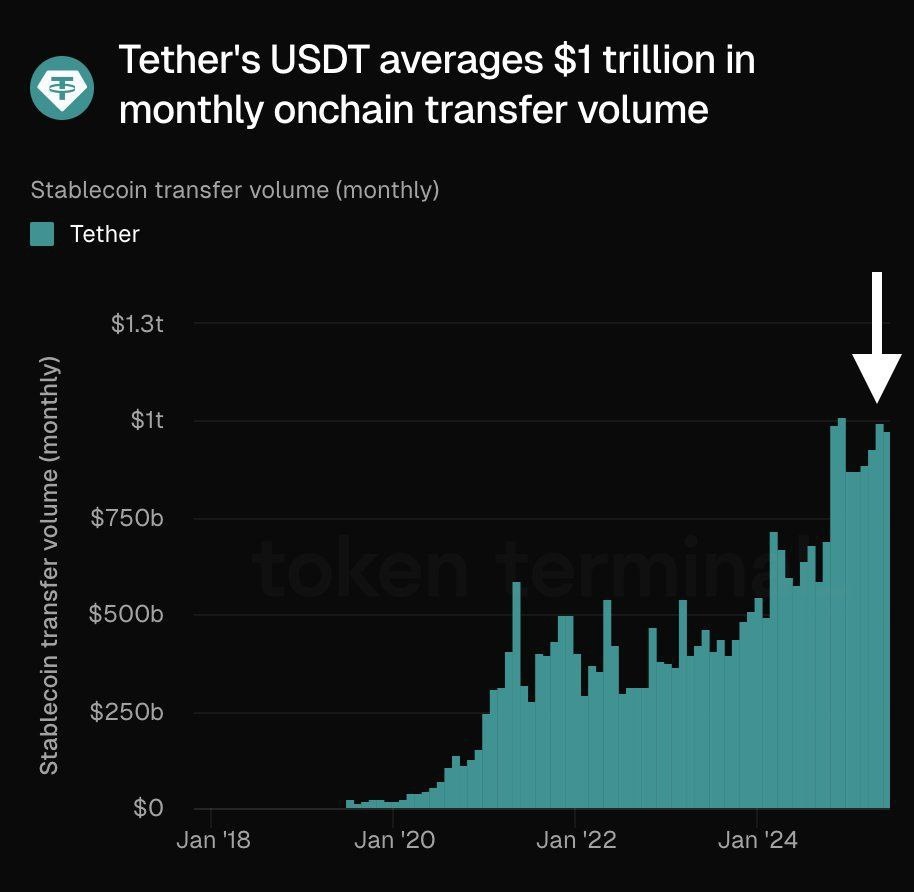 🚀 #USDT On-Chain Volume Blasts Past $1 Trillion/month! Tether's CEO, Paolo Ardoino, just dropped the bomb: USDT is handling over a trillion bucks in monthly on-chain transactions! 💸 That’s more than some countries see in a whole year—talk about global crypto power moves! 🌍💰 Stablecoin supremacy? You bet! ✅