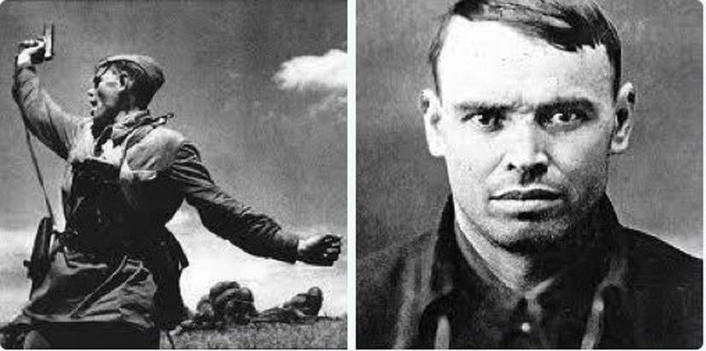 Тот самый "Комбат". Знаменитое фото фотографа Макса Альперта, запечатлевшего за мгновение до гибели младшего политрука Алексея Ерёменко, родившегося в 1906 году в Запорожье, который заменил раненого командира роты и погиб, поднимая бойцов в контратаку 12 июля 1942 года.
