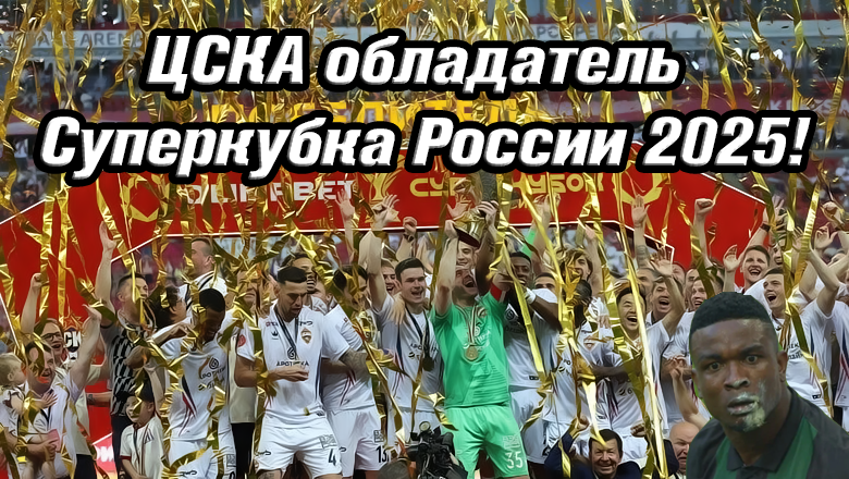 ЦСКА берёт первый трофей сезона, Суперкубок России! Гол Игоря Дивеева оказался единственным в матче! Борьба была весьма напряжённая, и в ней сильнее оказались армейцы, которые 1:0. Для нового главного тренера армейцев Фабио Челестини, это был первый официальный матч во главе ЦСКА, и он сразу принёс ему трофей. Отличный старт, который придаст команде и ему уверенности. Глебов – лучший игрок матча! Моё мнение таково. Надеюсь этот сезон станет для него волшебным! Но конечно, нужно отметить действия всей команды! Особенно, оборонительную линию! Роша и Дивеев – Короли Воздуха! Мойзес – цербер!